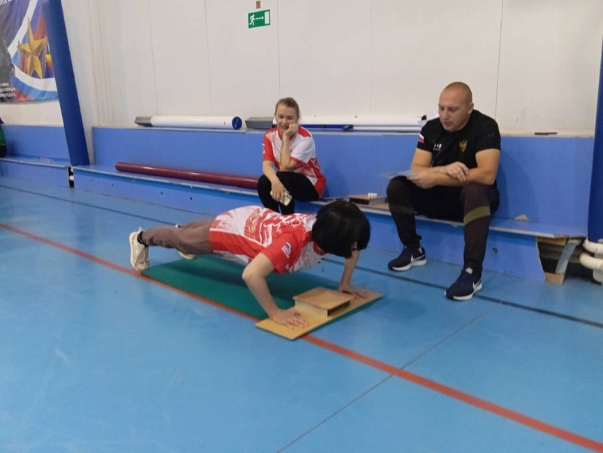 Подтягивание из виса на высокой перекладине (мужчины), сгибание - разгибание рук в упоре лежа на полу (женщины);